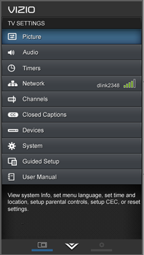 This is click through Sidebar (OSD) for the VIZIO E-Series and M-Series 2014 TV's.